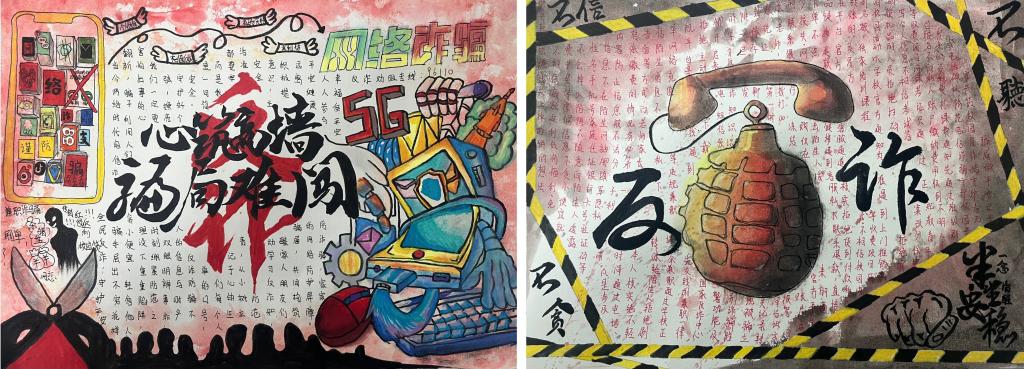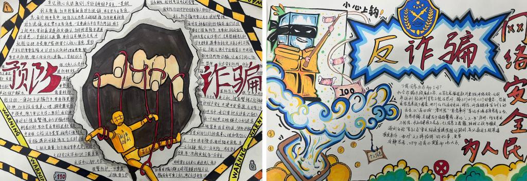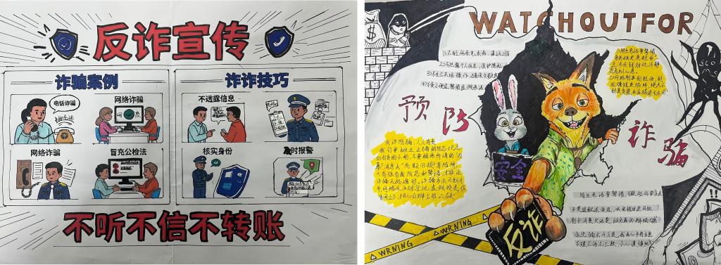 参赛作品主题鲜明、内涵丰富,或用生动漫画还原网络刷单、冒充公检法等常见诈骗场景,诙谐揭示骗局伎俩;或用细腻笔触搭配醒目标语,呼吁大家捂紧钱袋子。经评审团严格评选,活动最终评出一、二、三等奖及优秀奖若干,获奖作品在437必赢会员中心大厅集中展示,吸引师生驻足欣赏、交流学习。此次活动不仅为同学们提供了展示艺术才华的平台,更以沉浸式、趣味性的方式普及反诈知识,实现“以画传声、以艺反诈”的效果。